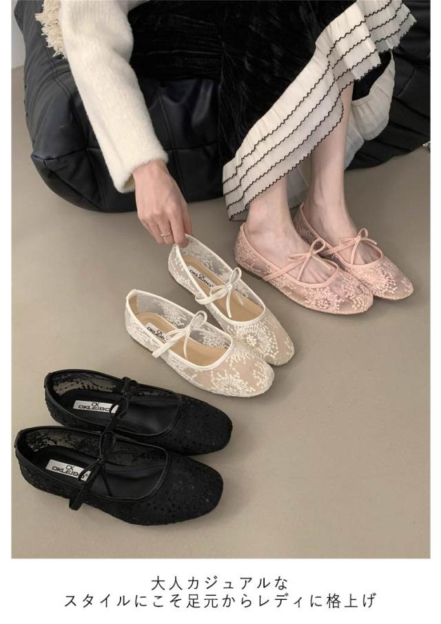 レースパンプス パンプス スクエアトゥ ストラップ レディース 二次会 ローヒール リボン ワンストラップ フラットパンプス 痛くない フラットシューズ 歩きやすい リボン シースルー かわいい きれいめ レースパンプス パーティー