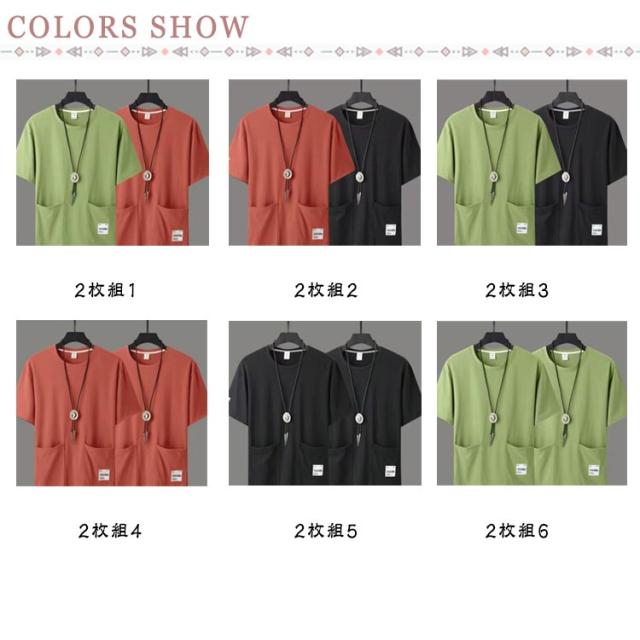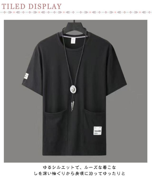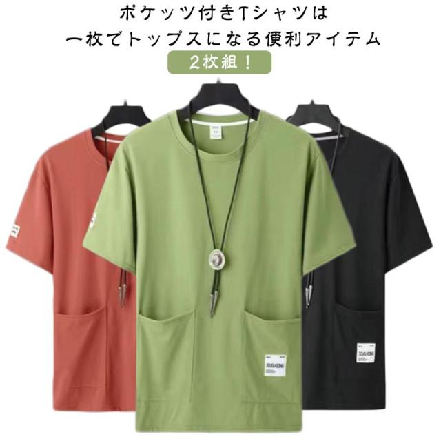 tシャツ ポケットtシャツ ポケット付き クルーネック 2点セット 夏服 無地Tシャツ オーバーサイズ メンズ ビッグtシャツ 夏 半袖Tシャツ 2点セット 無地tシャツ カットソー カジュアル ゆったり 大きいサイズ ヨガ ウォーキング 韓国ファッション