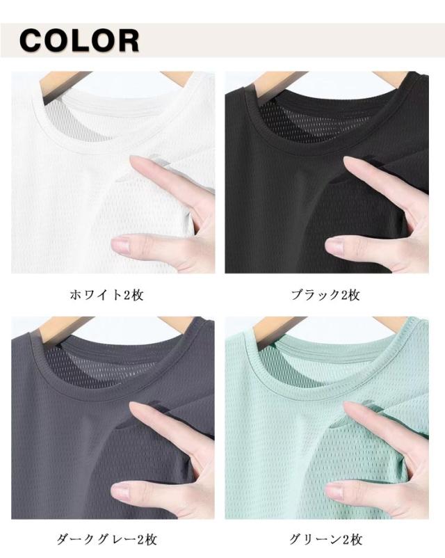 メンズ 半袖 クルーネック 作業着 メッシュTシャツ メッシュ tシャツ 吸汗速乾 夏用 ドライ 接触冷感 Tシャツ tシャツ インナーウエア 秋 涼しい 【2枚セット】 通気性 春 夏 【2枚セット】 ランニング ゴルフ スポーツウェア インナー 肌着 ルームウェア