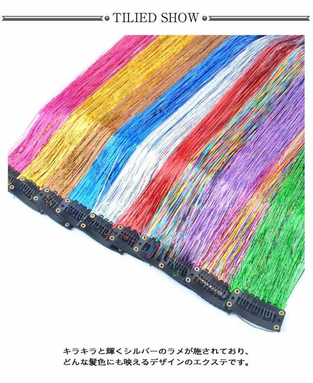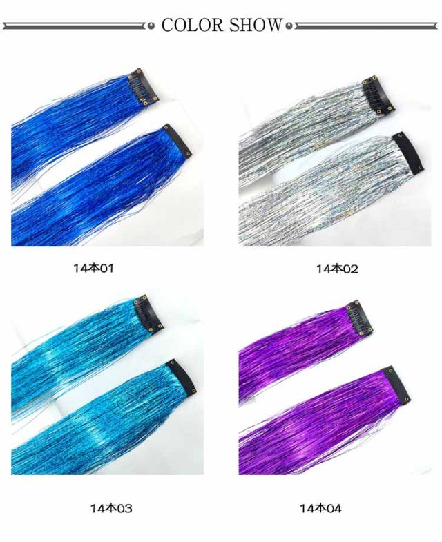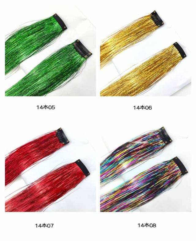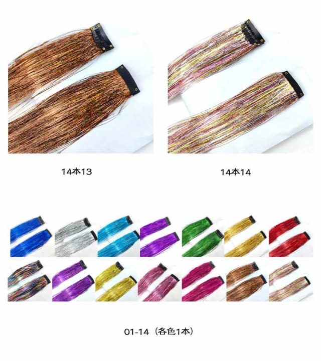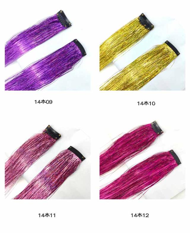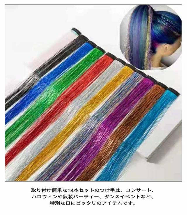 ヘア 推しカラー セルフ ティンセル ヘアアレンジ 全14色 ワンタッチ 14本セット 全14色 光る エクステ ヘア カラー ウィッグ 部分ウィッグ ティンセル 成人式 髪型 発表会 ヘアアクセサリー 子供 つけ毛 キッズ ダンス ライブ ポイントメッシュ
