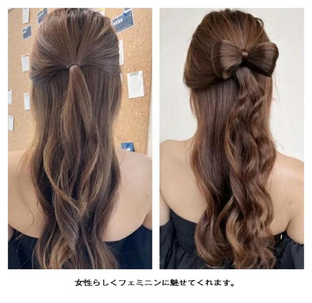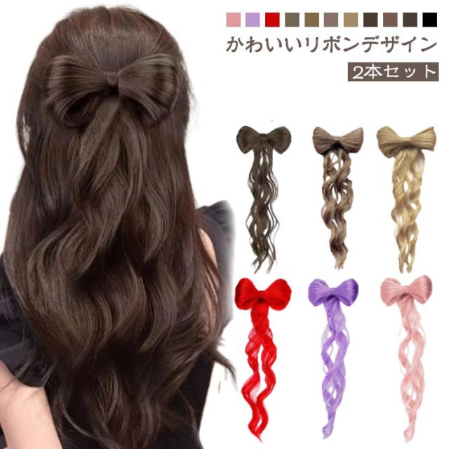 | 【2本セット】 かわいいリボンデザイン〜 ワンタッチ、クリップで簡単スタイリングでカラフル&クールなヘアスタイルに大変身! 女性らしくフェミニンに魅せてくれます。 絶妙なカールが可愛らしい印象になりすぎないから、カジュアルなコーデとの相性も抜群! | |