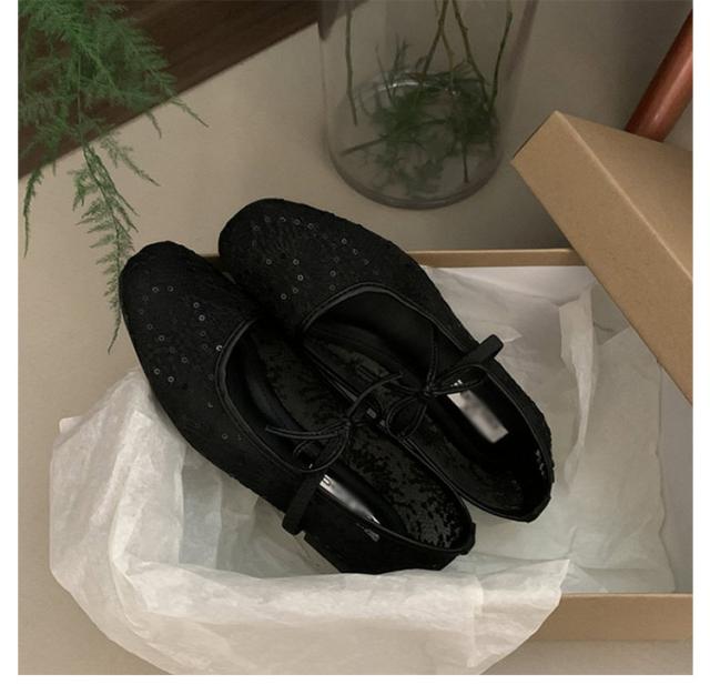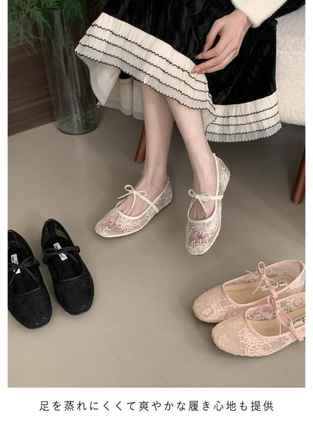 フラットパンプス ワンストラップ レディース ストラップ ローヒール パンプス スクエアトゥ かわいい レースパンプス パンプス 痛くない フラットシューズ 歩きやすい リボン シースルー レースパンプス きれいめ 二次会 パーティー