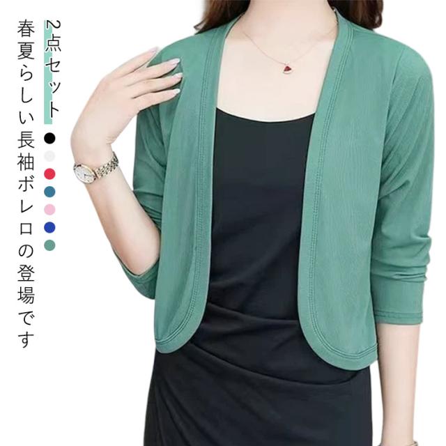 薄手 ボレロ レディース春夏 ショート丈 全7色 長袖 接触冷感 アイスシルク 全7色 サマーカーディガン ショートカーディガン 冷感カーディガン ひんやり 涼しい 大きいサイズ M L XL 2点セット 3XL 4XL