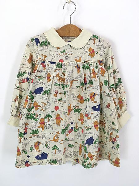 キッズ 古着 70s Winnie the Pooh Disney くまのプーさんと仲間たち キャラクター 総柄 ワンピース 6歳 古着
