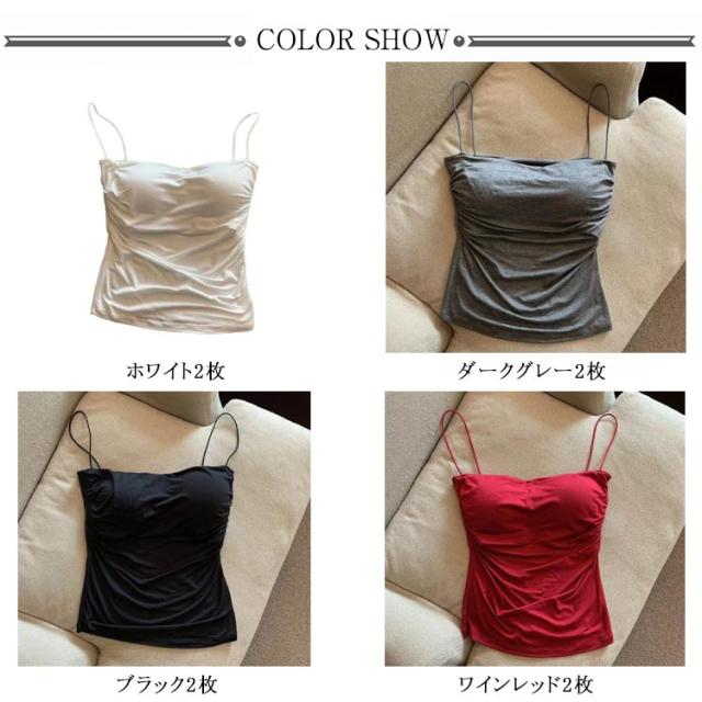 | パッド付きキャミソール。2枚セット! このインナーキャミソールは、ブラジャーなしでも着られるカップ付きで、ジャケットやシャツのインナーとしても完璧! 通気性に優れており、蒸し暑い季節でも快適に着られる素材を使用。 高ストレッチ丸ゴム肩紐を使用しており、しっかりとした安定感を提供。 | |