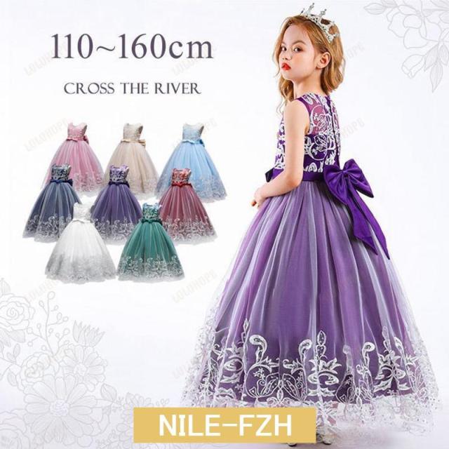 ピアノ発表会 ドレス 中学生 子供 130 150 演奏会ドレス キッズ 刺繍 ロング ワンピース 女の子 コンクール 小学生 結婚式 姫様 撮影 演奏 110-160cm