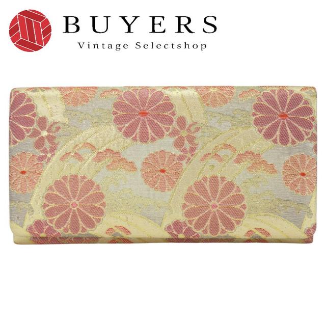 中古 和装バッグ クラッチ 正絹(金銀糸除く) ゴールド ピンク マルチカラー 総柄 華やか 帯地 和装 呉服 和服 きもの レディース 女性