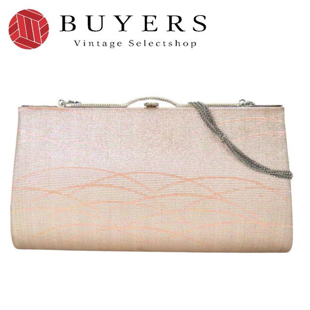 中古 和装バッグ クラッチ フォーマル ポリエステル ピンク シルバー金具 2WAY 華やか パーティ 和装 呉服 和服 きもの レディース 女性