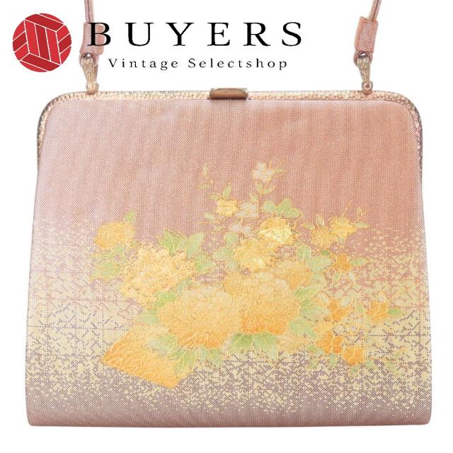 中古 和装バッグ ハンドバッグ フォーマル 正絹(金銀糸除く) ピンク系 マルチカラー グラデーション ぼたん 華やか パーティ 和装 呉服 和服 きもの レディース 女性