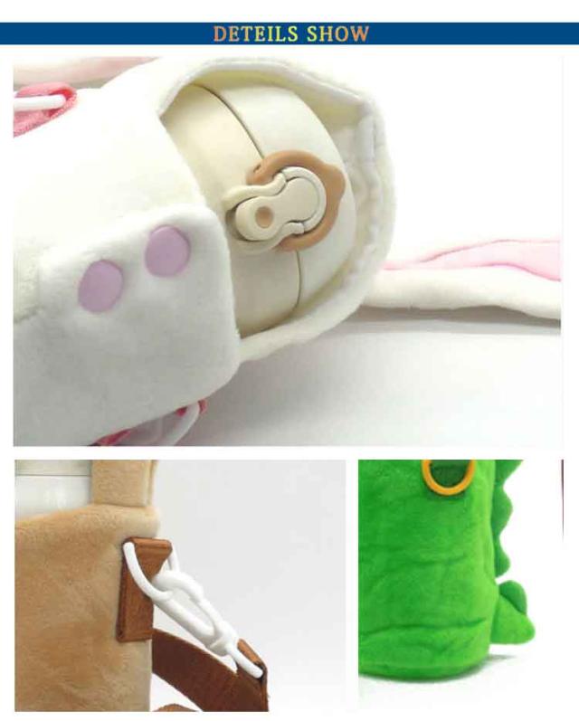 | 衝撃や傷からボトルを守る!もこもこ可愛いボトルカバー 持ち運びに便利なショルダーストラップつき、両手をフリーになります。 スナップボタンで簡単に開閉でき、お子様でもご使用いただけます。 水外側がふわふわで触り心地のよい、ぬいぐるみ素材です。 肩掛けできるのでアウトドアや幼稚園の遠足、お子様とのお出かけにも使えてかわいい♪ | |