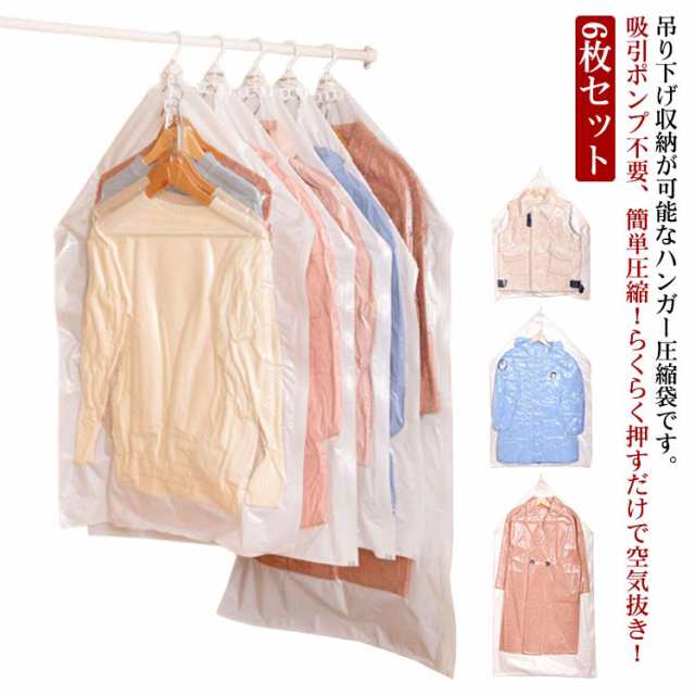 6枚セット 吊るせる衣類圧縮袋 衣類圧縮袋 吊るせる 135*70cm 110*70cm 90*70cm 手押し 圧縮袋 手動 衣類圧縮 コート ダウンジャケット 洋服 クローゼット収納 押入れ収納 省スペース 布団 収納袋 季節品 衣替え用品 衣替えグッズ 旅行 出張 帰省 クリア 透明
