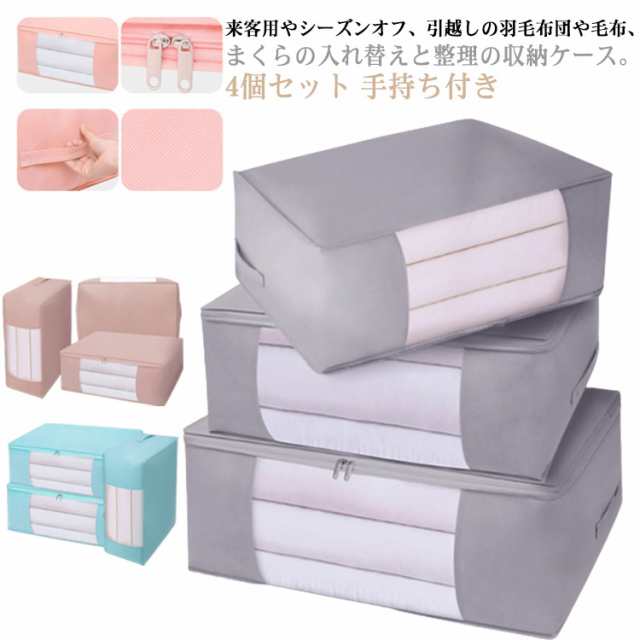 布団収納袋 衣類収納ケース 不織布 4個セット 布団収納 布団収納ケース 収納ケース 衣類収納袋 クローゼット 窓付き 手持ち付き 隙間 押入れ収納 おしゃれ 持ち手付き 大容量 シーズンオフ布団 収納袋 引越しバッグ クローゼット収納 軽量 コンパクト 折りたたみ