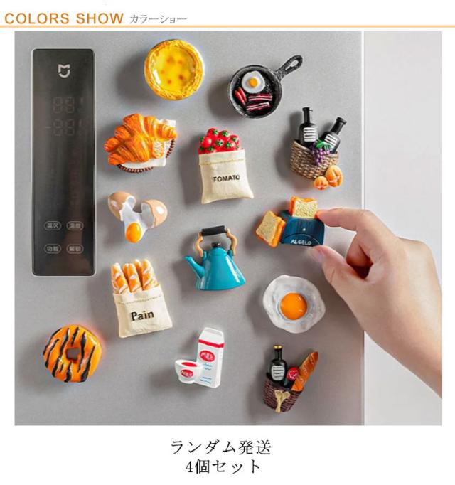 リアルな見た目でご飯作りも楽しくなる マグネット 冷蔵庫 磁石 4個セット 送料無料 朝食 ヨーロッパ パン ミルク ベーコン 目玉焼き インテリア 小物 雑貨 マスク掛け おしゃれ シンプル かわいい プレゼント