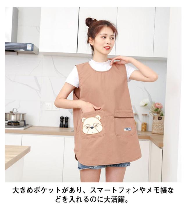 エプロン おてんばママ 保育士 保育園 幼稚園 可愛い 汚れ防止 クマ ポケット付き レディース 看護師 家事 大人用 プレゼント キッチン用品 料理 介護士 クッキング 送料無料