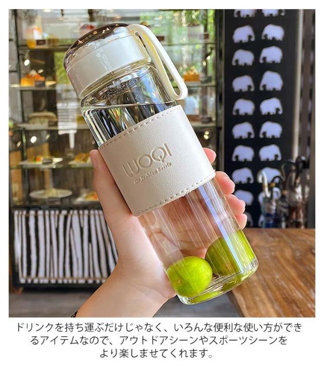 | 断熱カバー&フィルター付きのウォーターボトル。 飲み心地の良い大きさの飲み口で、ウォーターサーバーなどからも水が入れやすく洗いやすいです。 蓋は簡単に開く仕様なので散歩や通勤中など、いつでも手間を取らず快適に水分補給ができます。 PU製のカバーがついているため、断熱効果が期待できます。 シリコン製の紐がついているため、持ち運びにも便利です。 透明性・耐熱性のあるガラス製で、丈夫で軽く、お好みの水出し茶を作り持ち運びできます。 フィルター付きなので、茶葉を気にすることなくそのまま飲むことができます。 ドリンクを持ち運ぶだけじゃなく、いろんな便利な使い方ができるアイテムなので、アウトドアシーンやスポーツシーンをより楽しませてくれます。 シンプルなデザインながら落ち着いたくすみカラーがおしゃれで、毎日使いたくなります。 | |