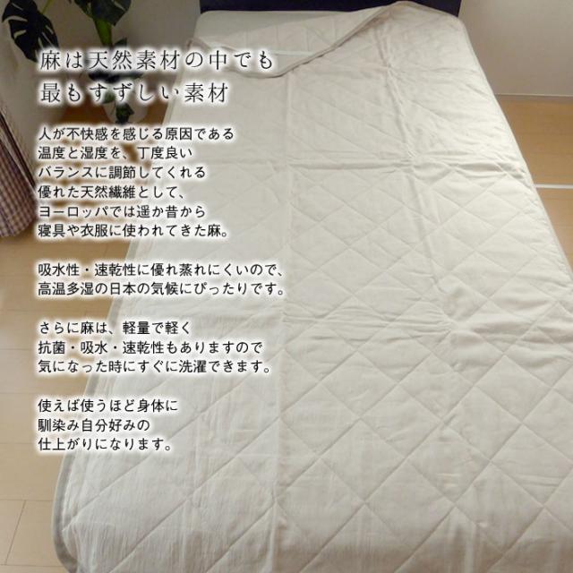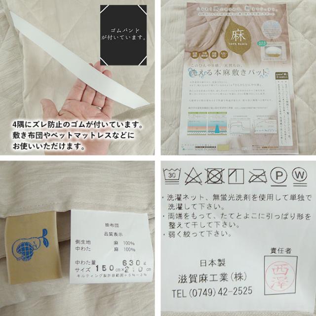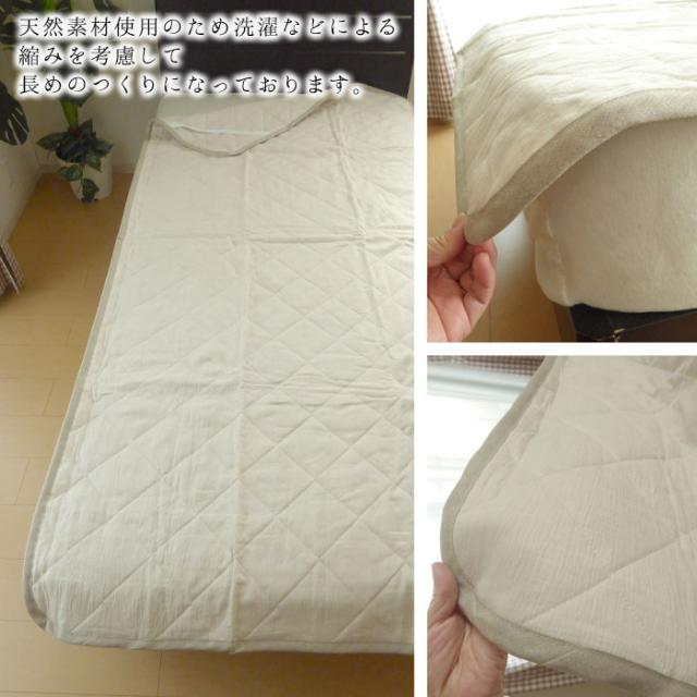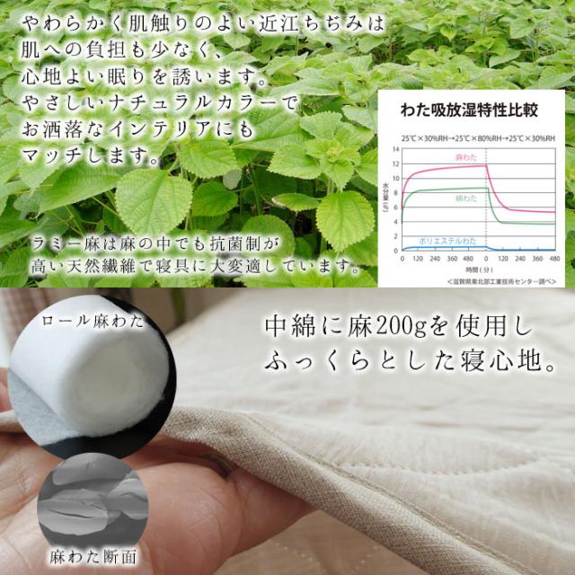 日本製 本麻敷きパット オール麻 敷パット 敷パッド シングル 100×200cm 両面麻 近江ちぢみ 洗える麻わた 滋賀麻 ベージュ 03-P104-S