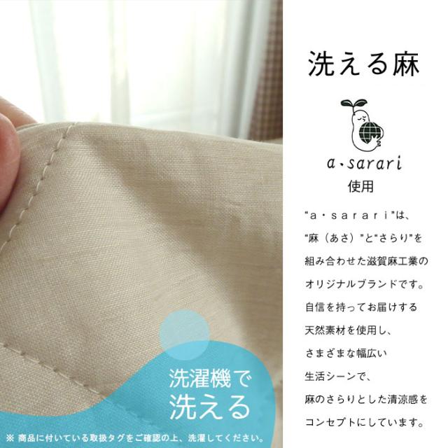 | 表地・裏地:麻100%(タテ糸 ラミー麻100%【60番手】、ヨコ糸 ラミー麻100%【80番手】) 中わた:麻100%(ラミー) |
