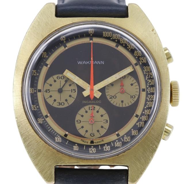 WAKMANN ワックマン INCABLOC SS 手巻き クロノグラフ 黒文字盤 腕時計 メンズ 【中古】