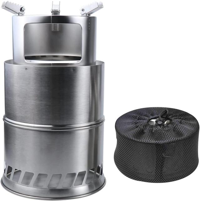 ウッドストーブ 大型 ソロストーブ 二次燃焼 キャンプストーブ 焚火台 約φ20×h31cm ストーブ 軽量 コンパクト 持ち運び便利 ステンレス
