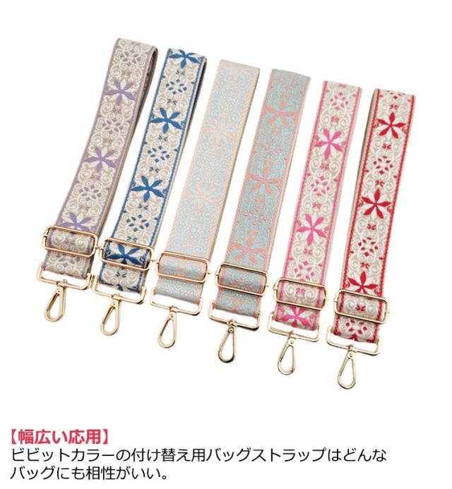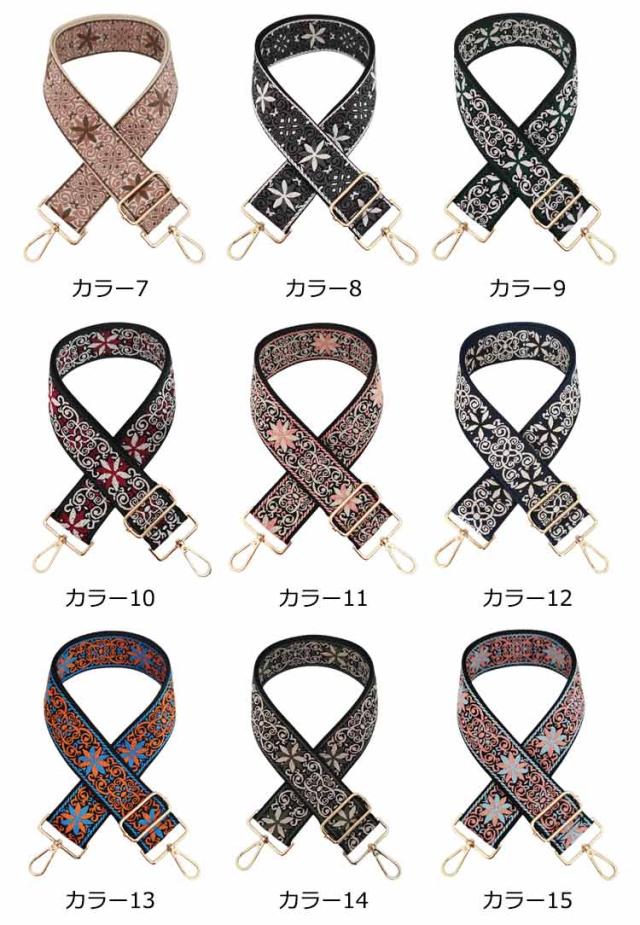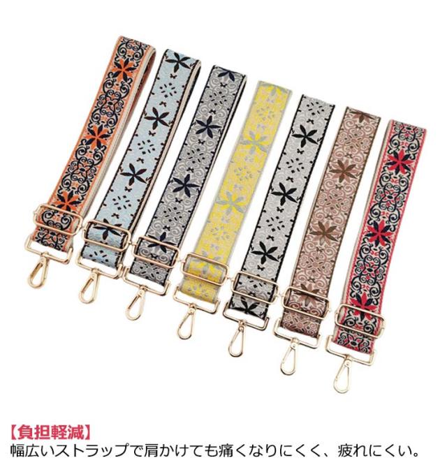 バッグ用 花柄 ショルダーストラップ 刺繍 交換用肩掛けひも バッグストラップ 太め エスニック 交換ベルト 補修 斜め掛け 肩掛け 調節可能 ショルダーストラップ 幅5cm 長さ75-135cm(調節可能)