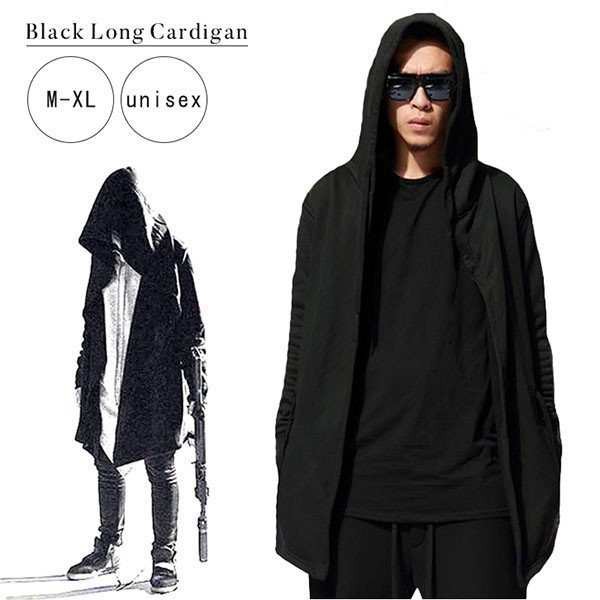 カーディガン メンズ 長袖 ロングカーディガン ロング丈 メンズロングカーディガン シンプル 無地 ブラック フード付き ユニセックス 男女兼用 伸縮