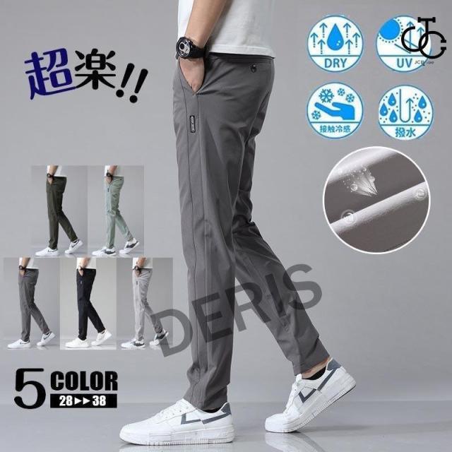夏ズボン チノパン メンズ ゴルフパンツ 涼しい ストレッチ ロングパンツ 無地 接触冷感 ゴルフウエア 薄手 夏物 カジュアル