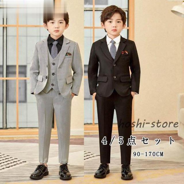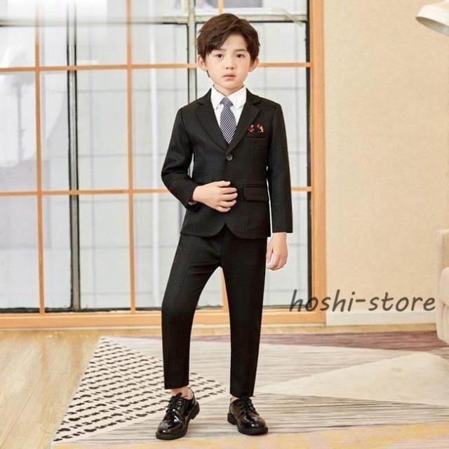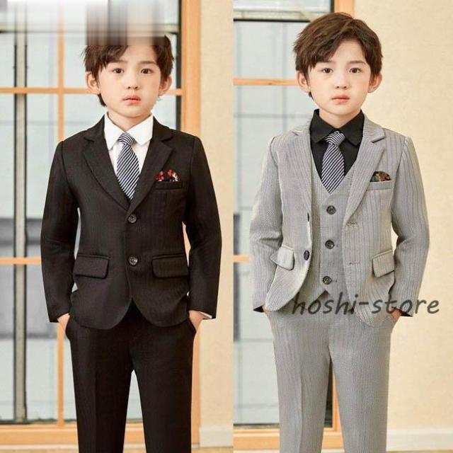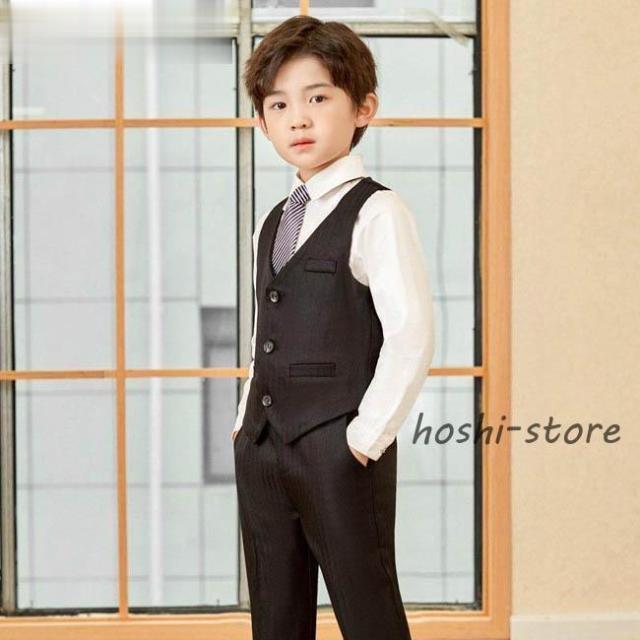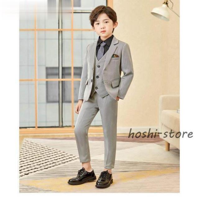 小学校 卒業式 子供服 入学式 スーツ 男の子 キッズ ワイシャツ ネクタイ ブレザー ベスト ズボン フォーマル スーツ 男の子 おしゃれ 縦ストライプ 長袖