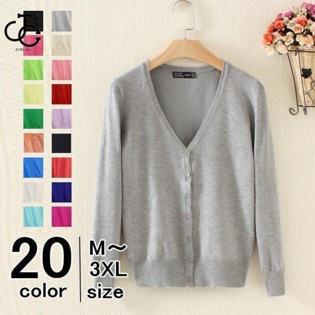 カーディガン レディース Vネック ミディアム丈 長袖 無地 20色 パステルカラー カーデ 羽織り アウター