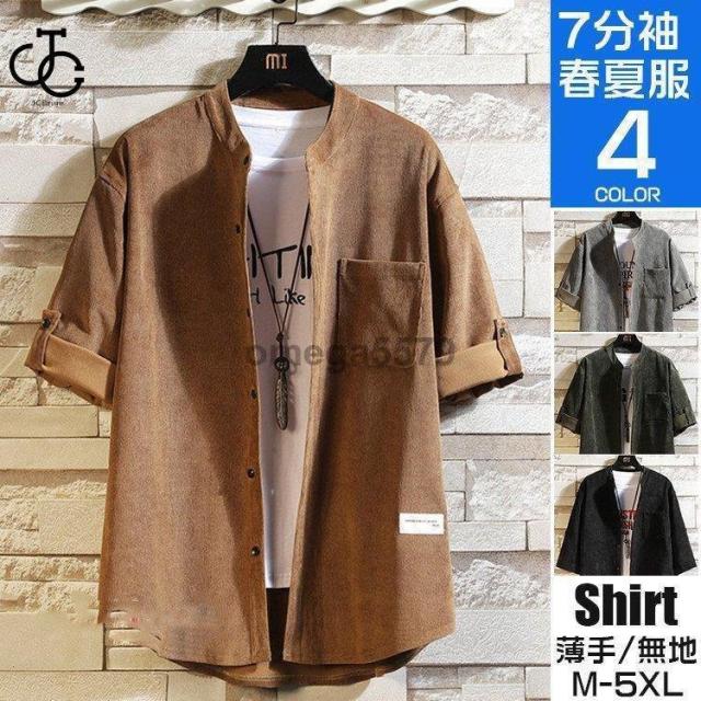 コーデュロイ シャツ メンズ 半袖 開襟シャツ 7分袖シャツ 七分袖 おしゃれ 夏服 無地 トップス