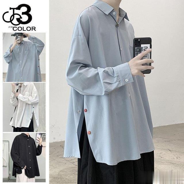 シャツ メンズ 長袖 ビッグシルエット シャツ ゆったり シャツ カジュアルシャツ ロングシャツ 長袖シャツ ビッグシャツ 韓国 ファッション