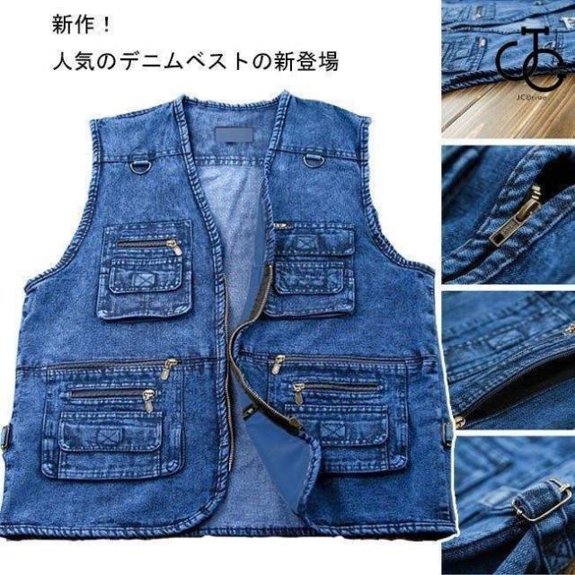 デニムベスト メンズベスト 無地ベスト ポケットつき ファスナー ヴィンテージ 袖なし カッコイイ 四季