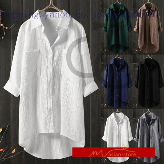 ロングシャツレディーストップス カジュアルシャツ 女性用シャツ 無地 ロング 秋服 春夏秋 羽織り カーディガン 通勤通学 20代30代40代50代 綿麻