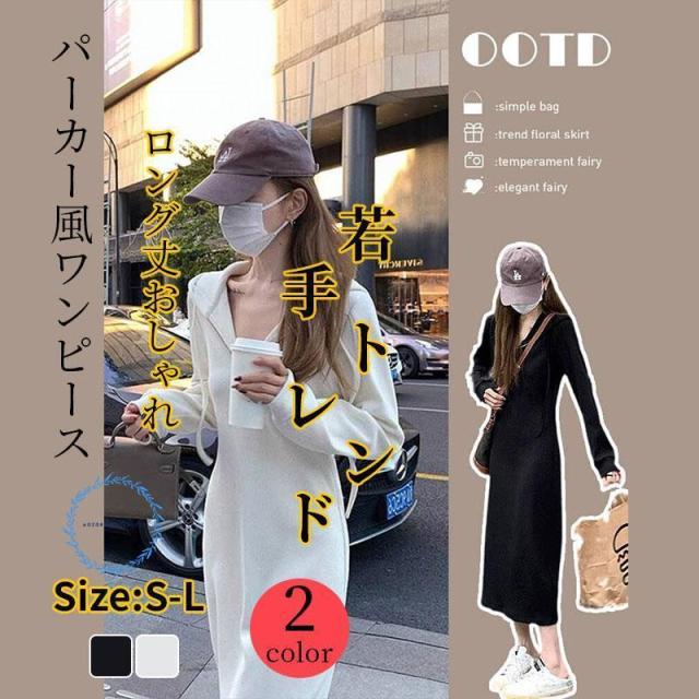 パーカーワンピース ワンピース ロングワンピース 長袖 Aライン ジップワンピーストレーナー ロング丈 デザイン 冬
