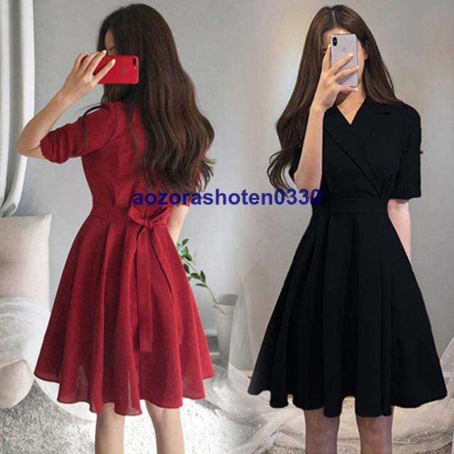 連携キーワード:ワンピース レディース 40代 キレイめ 膝丈ワンピース 春夏 半袖ワンピース 黒スカート vネック リボン オシャレ 韓国風 大きいサイズ 大人可愛い30代 50代