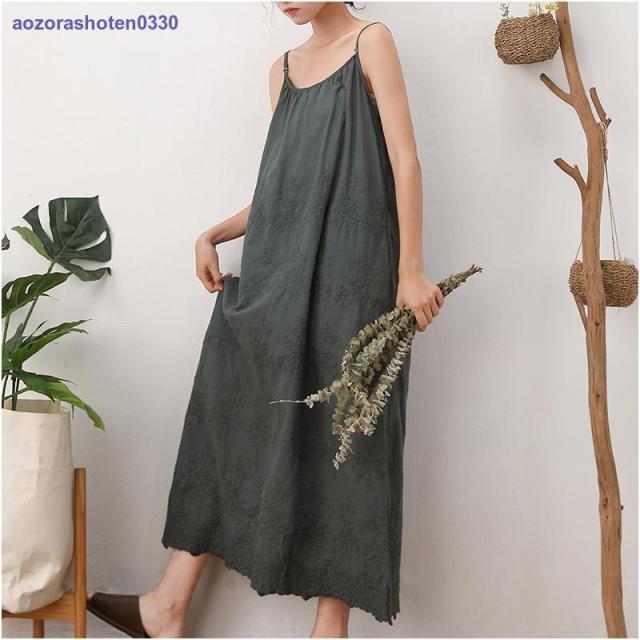 キャミワンピース ワンピース ロング リネン 刺繍 綿麻風 夏 キャミソール ロング丈 ビーチ ワンピース 夏 ワンピース レディース 綿麻風 体型カバー ビーチ