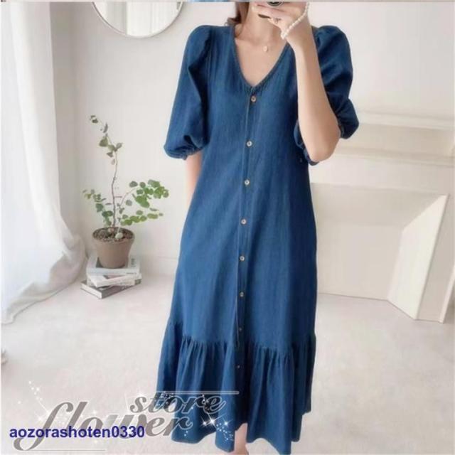 ワンピースレディース 40代 きれいめ ロングワンピース 春夏新作 半袖ワンピース デニムワンピース オシャレ韓国風 大人 お出かけ 30代50代