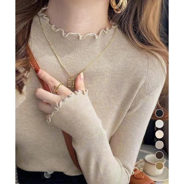 プチハイネックニットセーター 長袖プルオーバー 無地 きれいめニットインナー 重ね着シンプルニットソー ベーシックニット
