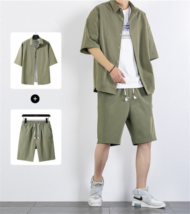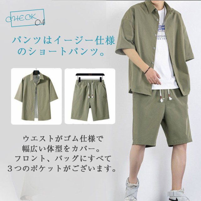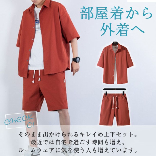 セットアップ メンズ 夏 半袖 薄手 接触冷感 涼しい 上下セット 短パン 旅行 学生 高校生 大学生 シャツ トップス 男性用 ギフト シンプル お洒落