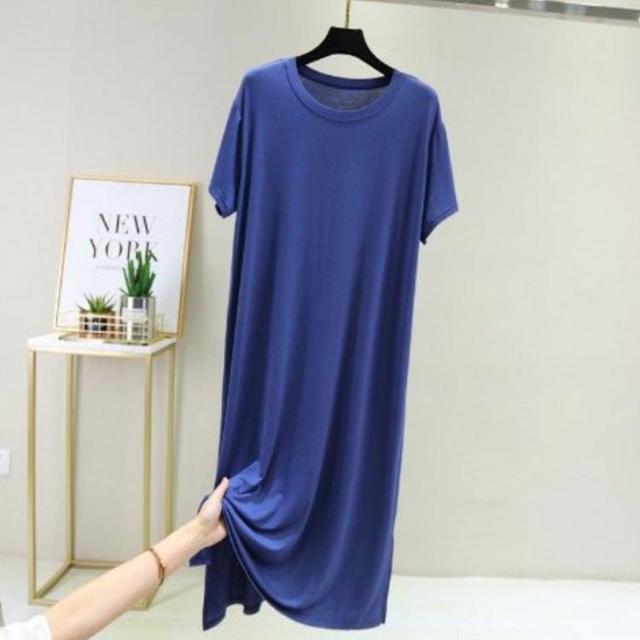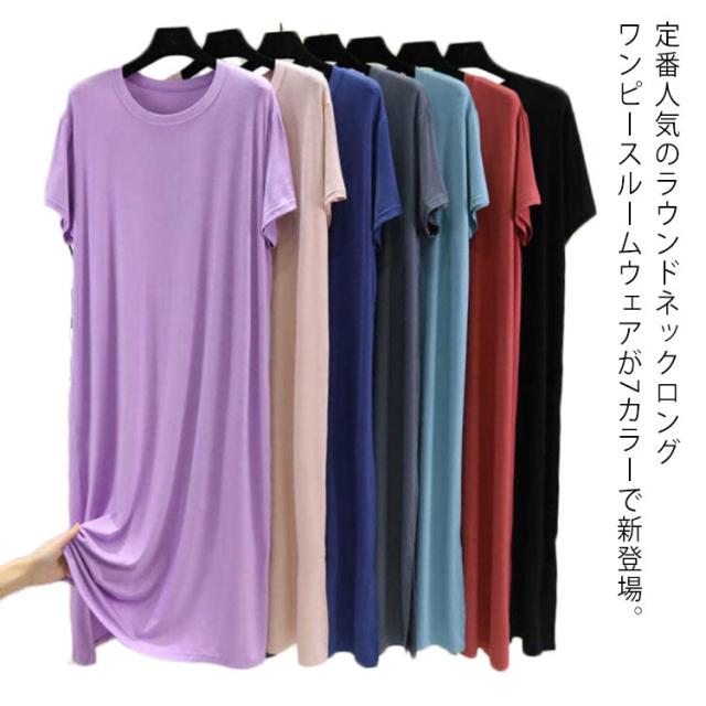 レディース ナイトウェア ワンピース インナー ロングtシャツ 部屋着 寝間着 パジャマ マキシ丈 ルームウエア ロング丈 夏 モダール綿 カットソー 半袖 秋 無地 大きいサイズ 春