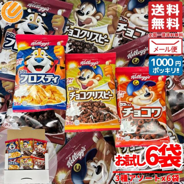 ケロッグコーンフレーク チョコ 3種アソート 3種x6袋 1000ポッキリ 訳あり メール便 コストコ 通販 送料無料