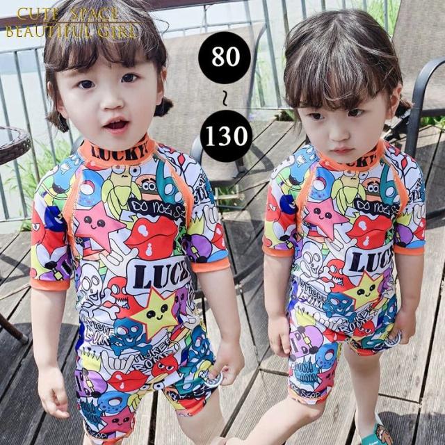 キッズ 水着 キッズ水着 子供 子ども 女の子 ガールズ ベビー水着 赤ちゃん 子供水着 水着 半袖 ラッシュガード ワンピース カラフル キャラクター 柄 ショットパンツ 可愛い お洒落 オシャレ 大注目 80 90 100 110 120 130cm