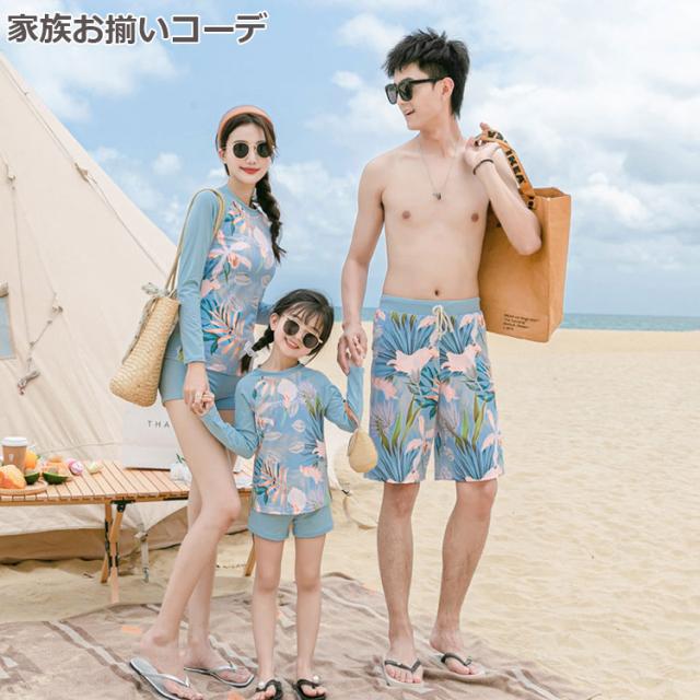 セパレート 水着 家族お揃い水着 カップル水着 メンズ レディース セットアップ ラッシュガード 長袖 UVカット ショートパンツ 短パン ハーフパンツ ビーチパンツ 日焼け対策 みずぎ 葉っぱ おしゃれ アロハ風 体カバー プール 水泳 スイミング授業 みずぎ 親子コーデ