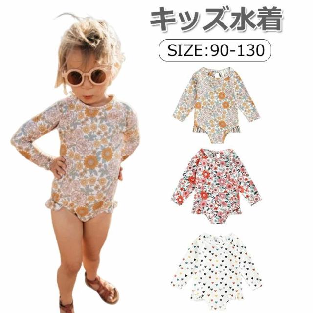 キッズ 水着 ワンピース 子供 女の子 キッズ水着 花柄 ハート柄 90 100 110 120 ベビー水着 日焼け止め ガールズ ラッシュガード 幼稚園 女児 ガールズ 水遊び プール 海 体型カバー 可愛い お洒落 スイミング 練習 旅行 水遊び