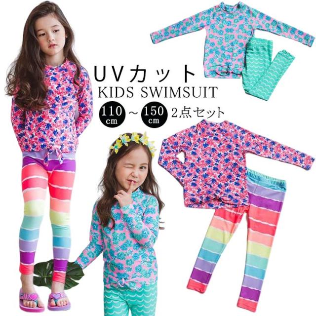 キッズ 水着 女の子 子供 子ども ベビー水着 赤ちゃん 水着 スイムスーツ セパレート ラッシュガード セットアップ 長袖 花柄 スカート レギンス 小学生 お洒落 オレンジ ネイビー 可愛い 80 90 100 110 120 130 140cm