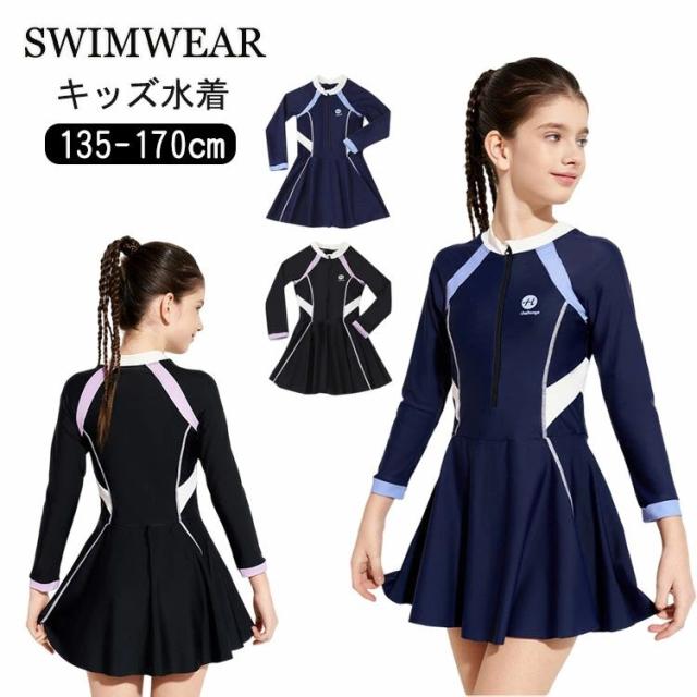 【2025新品】子供 ジュニア 水着 女の子 ワンピース 長袖 ジュニア スクール水着 高校生 小学生 中学生 オールインワン 水着 キッズ 水着 女児 子供 水着 ラッシュガード 中学生 ガールズ スクール ビーチ スイミング 練習用 可愛い 130 140 150 160 170cm