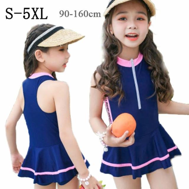 キッズ 水着 キッズ水着 女の子 ガールズ ベビー水着 赤ちゃん 子供水着 子供 子ども 水着 ワンピース オシャレ ガールズ ネイビー 90 100 110 120 130 140 150 160cm
