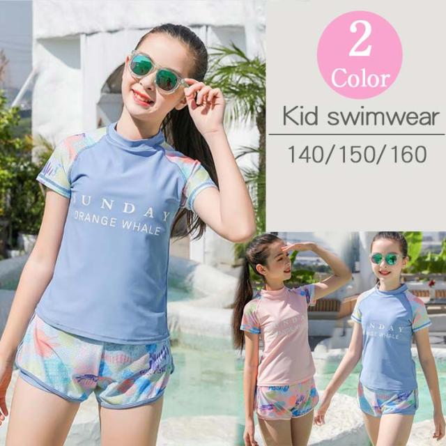 キッズ 水着 キッズ水着 子供 子ども 女の子 ガールズ セパレート 子供水着 水着 半袖 ラッシュガード 花柄 ピンク ブルー ショットパンツ ジュニア 130 140 150 160 165 170cm