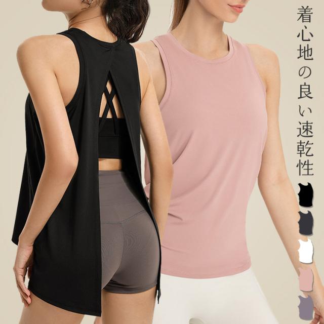 ヨガウェア トップス かわいい ロング丈 タンクトップ レディース ノースリーブ セパレートヘム バックスリット アメリカンスリーブ 黒 白
