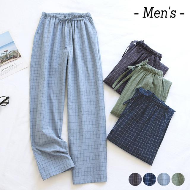 メール便送料無料 ルームウェア メンズ パンツ 春 夏 長ズボン 薄手 ボトムス ロング丈 ゆったり チェック柄 ウエストゴム ストレート パジャマ 部屋着 寝巻き ワンマイルウェア ポケット ひも ウエスト調節 リラックス おうち時間 旅行 入院 着替え プレゼント 父の日 ギフト リラックス