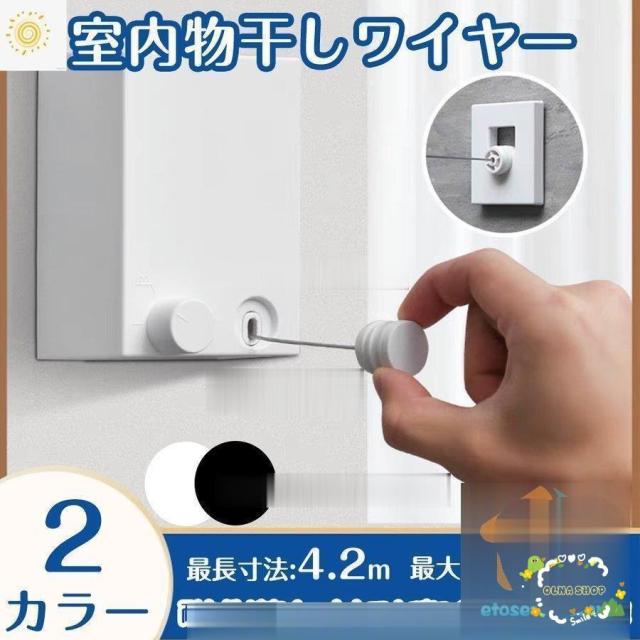 物干しロープ 室内物干しワイヤー 洗濯物干しワイヤー 部屋干し 洗濯物干し 伸縮式室内干し 長4.2m 耐荷重20KG 自由伸縮 穴開け不要 省スペース 室内屋外兼用
